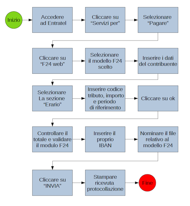 - Indipendentemente dall’interfaccia, le informazioni richieste sono le medesime di un F24 cartaceo. La versione digitale del modulo F24 richiede prima quali sezioni compilare (Erario, INPS, ecc...=) con i medesimi dati richiesti da un F24 cartaceo e solo dopo genera il modello con tutte le sezioni e i relativi campi compilati