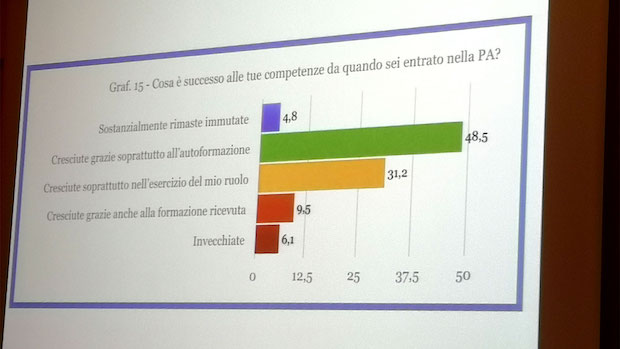 Dall’analisi emerge che l’età media dei dipendenti dell’Amministrazione Pubblica si aggira intorno ai 50 anni e circa il 62% dei casi dispongono solo di un diploma di licenza media superiore. Un dato che fa riflettere e che deve essere “invertito” attraverso i futuri concorsi che punteranno ad un target sempre più giovane e specializzato (tra i requisiti verrà sempre più richiesta, infatti, una formazione universitaria triennale o addirittura specialistica). Emerge anche la necessità da parte dei dipendenti delle PA di aggiornarsi e di frequentare corsi di avanzamento professionale per accrescere o migliorare le proprie competenze, o in certi casi, adeguarle alle nuove esigenze innovative/digitali. Da un questionario presente all’interno del report FPA si evidenzia che ben il 91,5% si aggiorna in maniera autonoma attraverso a letture o frequentazione di convegni o webinar.