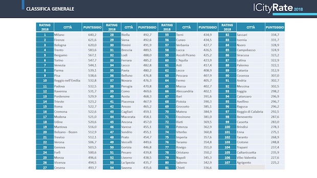 Sono le città e i territori locali i contesti dove l’innovazione trova le condizioni più favorevoli per nuovi modelli di governance e capacità di innovazione tecnologica. Nascono in questo modo le cosiddette “Smart Sustainable, Responsive City” (città che usano tecnologie ICT in materia di sostenibilità economica, sociale e ambientale). A tale proposito, Milano rimane la città italiana più smart d’Italia secondo la classifica di ICityRate 2018 (la classifica delle città intelligenti italiane). Quest’ultimo report mostra un Paese tagliato in due, con il Sud ancora lontano dalle dinamiche del resto d’Italia, ma pronto a lavorare per riscattarsi.