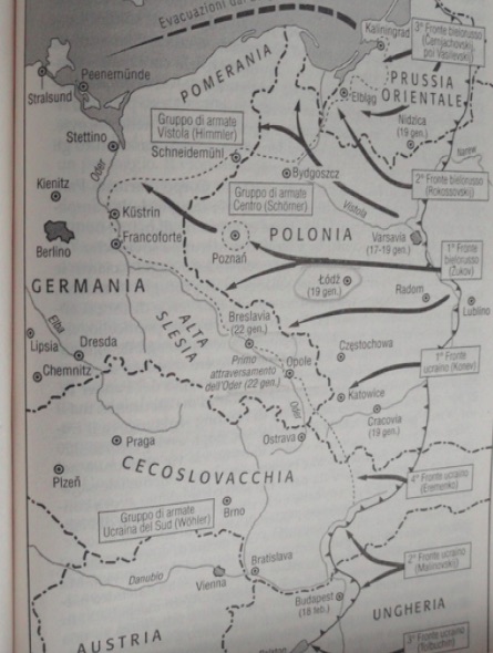 I russi avanzavano fino a 60km al giorno e già a fine gennaio erano sulle rive dell’Oder, il 29 gennaio era stata liberata Auschwitz; Berlino sembrava a portata di mano.