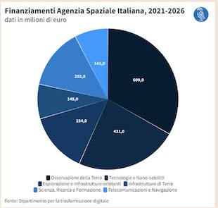 Gli investimenti nel settore Spazio previsti in Italia nel periodo 2021-2026 sono distribuiti su 4 linee: