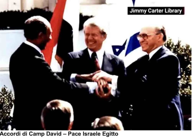 Firmato il 26 marzo 1979 a Washington, il trattato sancisce la conclusione dello stato di guerra, pone fine all’occupazione israeliana del Sinai e assicura la libera circolazione dei navigli israeliani nel canale di Suez. In definitiva, l’avvicinamento tra Egitto e Israele modifica pesantemente i rapporti di forza nel Medio Oriente, contribuendo a indebolire la presenza sovietica nella regione e a rafforzare il sistema di alleanze a guida americana.