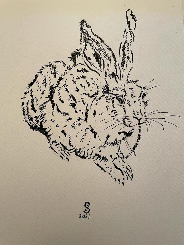 Disegno di Simonetta fatto con pennino e china riproducente il famoso Coniglio di Albrecht Dürer