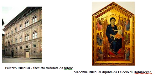 Le ingenti disponibilità finanziarie della famiglia contribuirono ad arricchire il patrimonio artistico di Firenze. Nel XII secolo i Rucellai fecero costruire la loro cappella nel transetto di Santa Maria Novella, nella quale fu collocata la Madonna Rucellai di Duccio di Buoninsegna e che oggi si trova agli Uffizi. Nel Quattrocento, la famiglia Rucellai, con il mecenate Giovanni Rucellai incaricò l’architetto Leon Battista Alberti di progettare alcuni dei più importanti capolavori a Firenze: il Palazzo Rucellai, il Tempietto in San Pancrazio, la Loggia Rucellai e, soprattutto, la facciata marmorea di Santa Maria Novella.