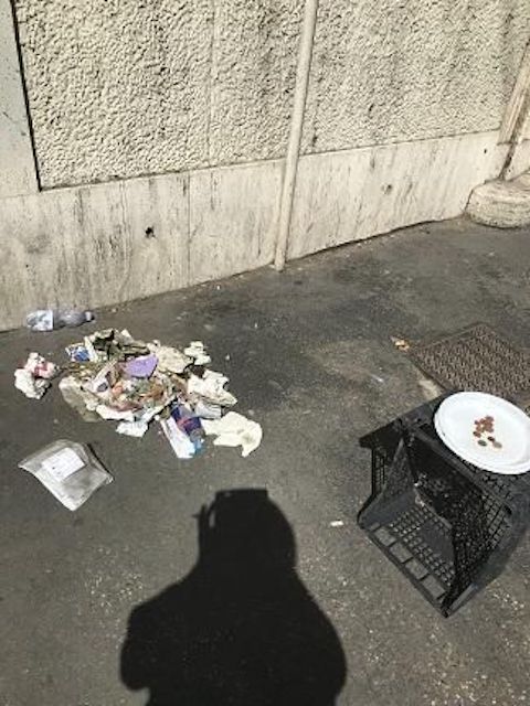 Davanti ad ognuna delle 3 cassette c’è una ciotolina che serve a raccogliere il denaro offerto dai passanti in cambio del servizio comprovato da cumuli di foglie secche o di pollini, qualche cartaccia e un gran quantitativo di mozziconi di sigarette schiacciate.