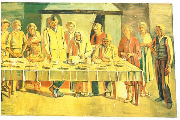 Innocente Salvini (1889-1979) - La spartizione della polenta - 1971
