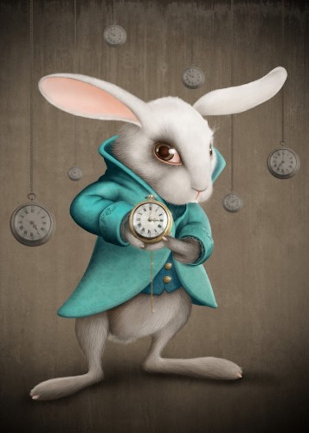 Il Coniglio Bianco ne “Le avventure di Alice nel paese delle Meraviglie” è l'unico personaggio del racconto nel Paese delle Meraviglie, luogo in cui ognuno percepisce il tempo secondo la forma che decide di dargli, che si trova ad essere perennemente in ritardo: vive una vita frenetica, sempre costretto a correre e a soffrire per inseguire il tempo, che sempre lo precede e mai è raggiunto.